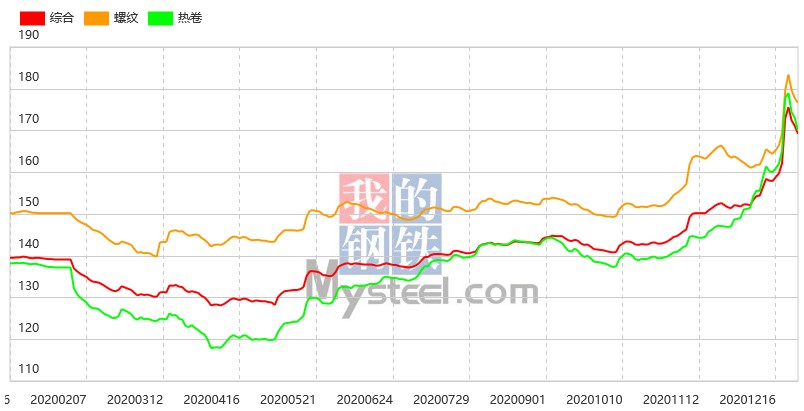 本周Myspic綜合指數報169.24點,較上一周上漲4.40%。其中,長材指數報183.22點,較上一周上漲4.64%。本周建筑鋼材市場價格大幅上漲,全國25個主要市場螺紋HRB400(20mm)均價為4408元/噸,較上周上漲177元/噸。